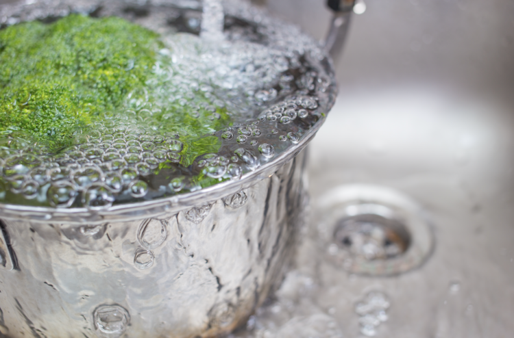 西兰花易长菜虫又不易被 察觉,可在烹调前把整棵 浸泡20至30分钟, 在水中加少许盐或梳打 粉清除农药和菜虫,再用水冲洗干净。